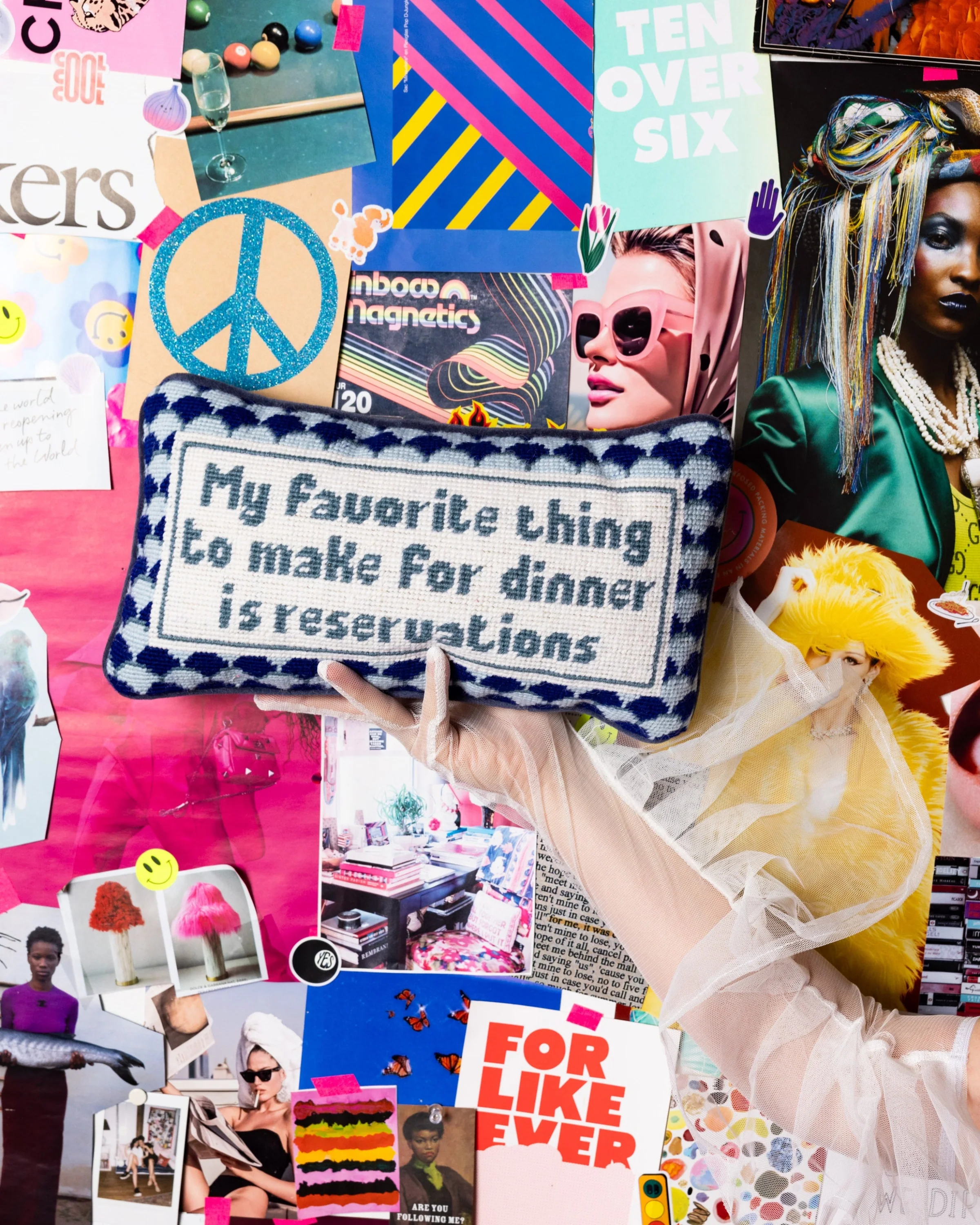 For the ones who know their culinary skills are best served outside the kitchen. This pillow is for those who say, ‘My favorite thing to make for dinner is reservations,’ because why cook when you can dine in style?
